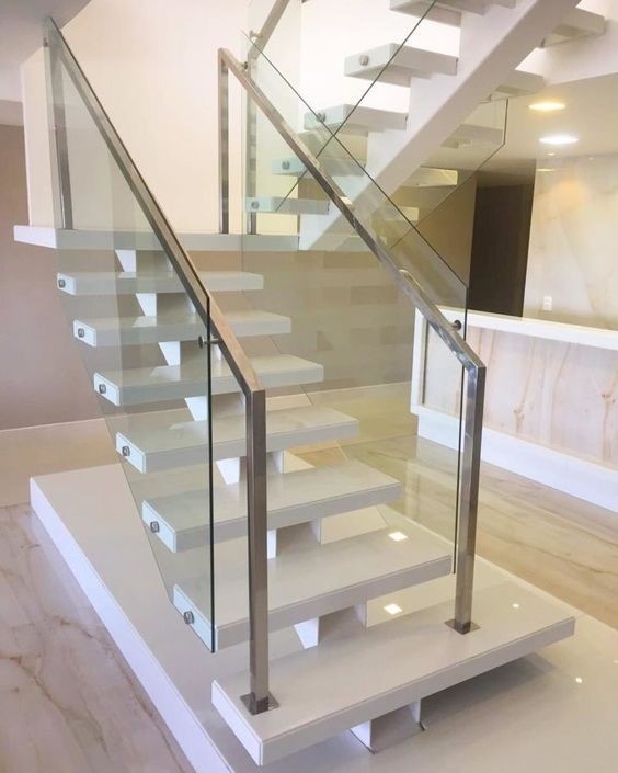Com uma manutenção e limpezas fáceis, o corrimão de aço inoxidável ou alumínio é muitas vezes escolhido para áreas internas, combinando com o vidro, sendo a parte metálica um suporte.